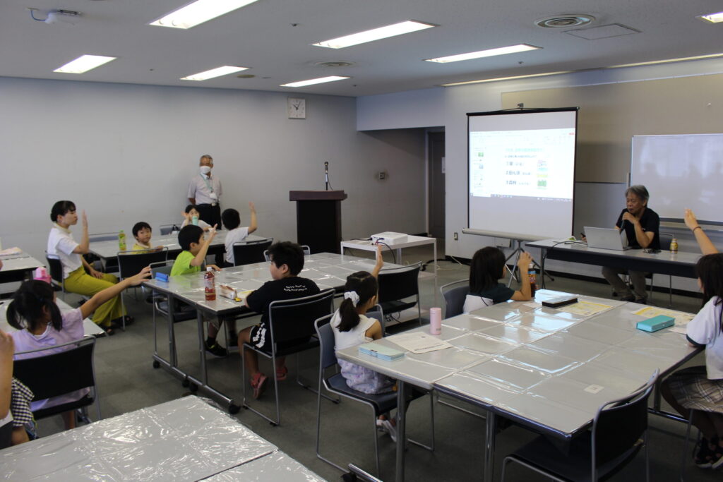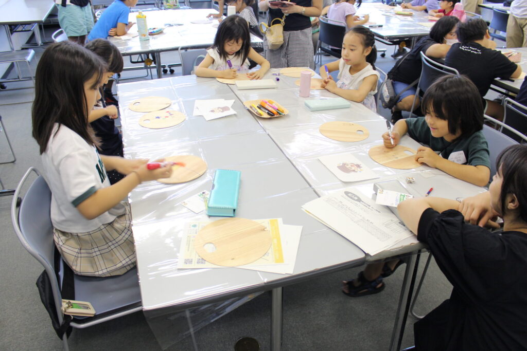 本講座では、森林の役割や林業、間伐などについて学んだ後、実際にスギ間伐材を使ってオリジナルうちわを作成し、森林について楽しく学びました!